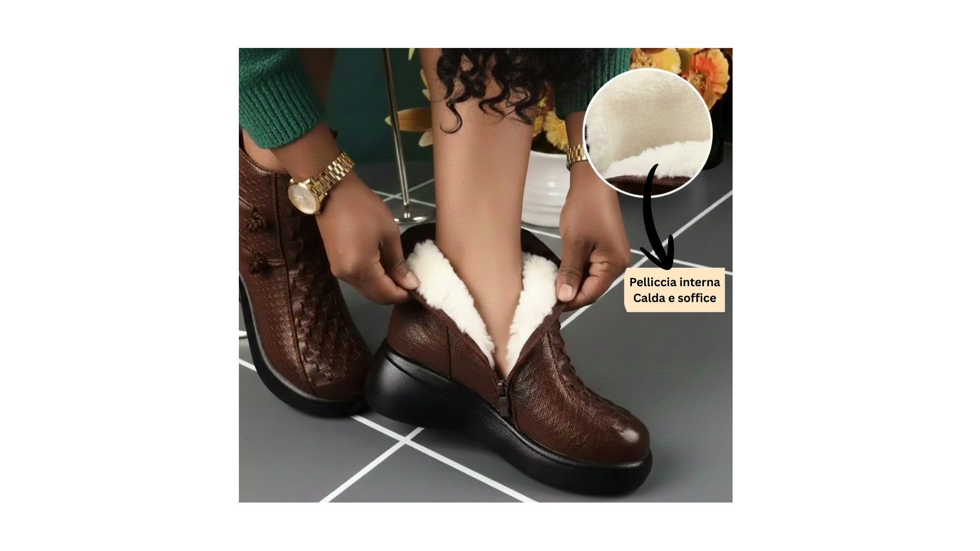 - Interno in pelliccia "Could-effect" una pelliccia ultra morbida che mantiene il piede al caldo tutto il giorno.🔥
